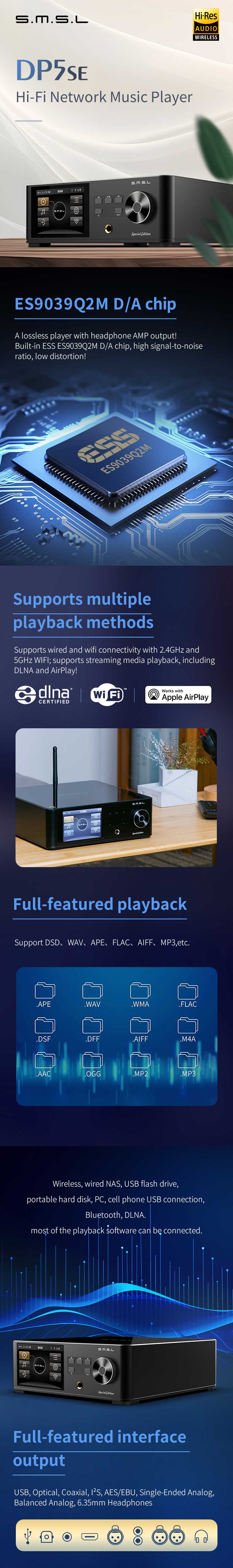 Supports audio format of DSD , WAV , APE , FLAC , AIFF , MP3 Etc.