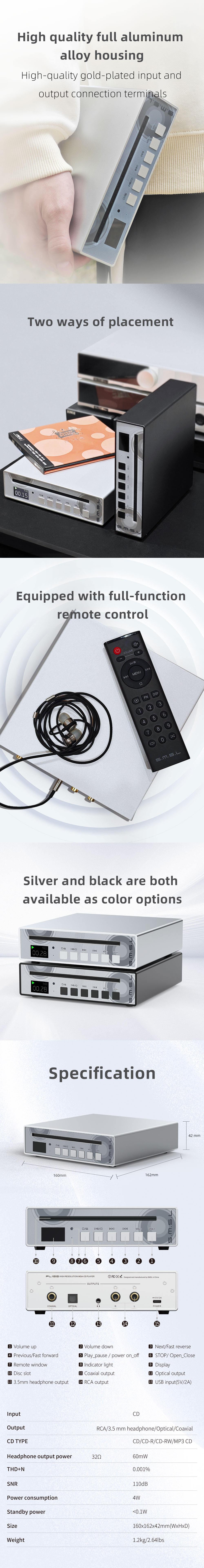 Built-in CS43131 DAC chip to bring out the best performance of CD;