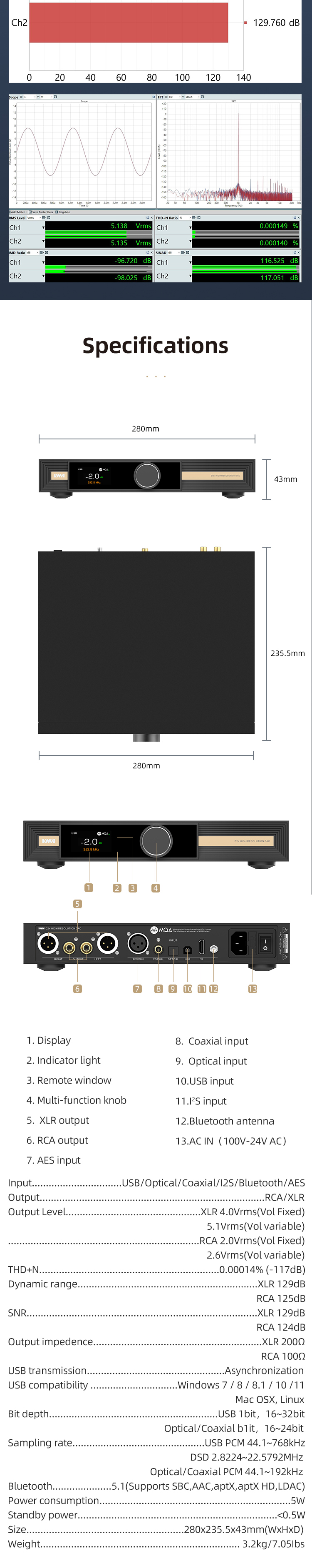 USB uses XMOS XU-316, a real 32bit USB solution, PCM supports up to 768kHz, and DSD supports up to DSD512
