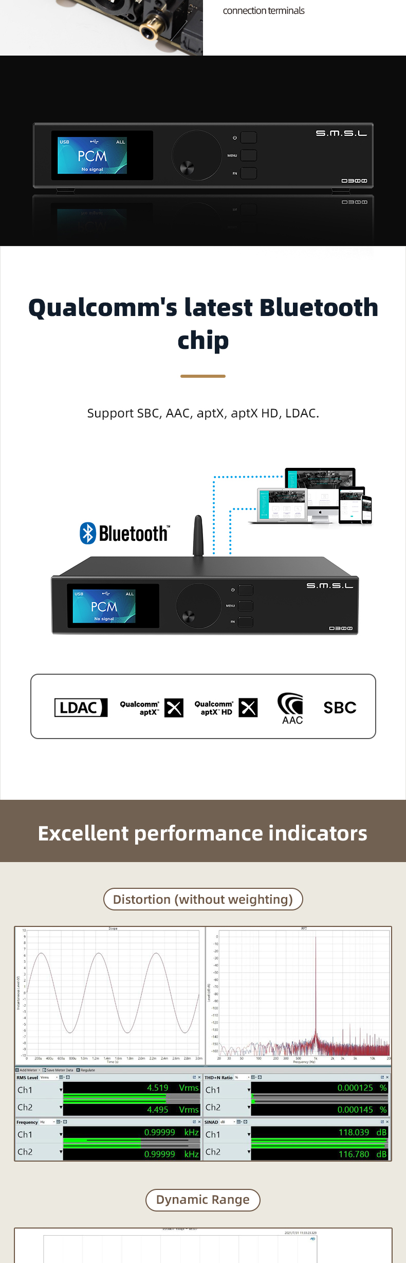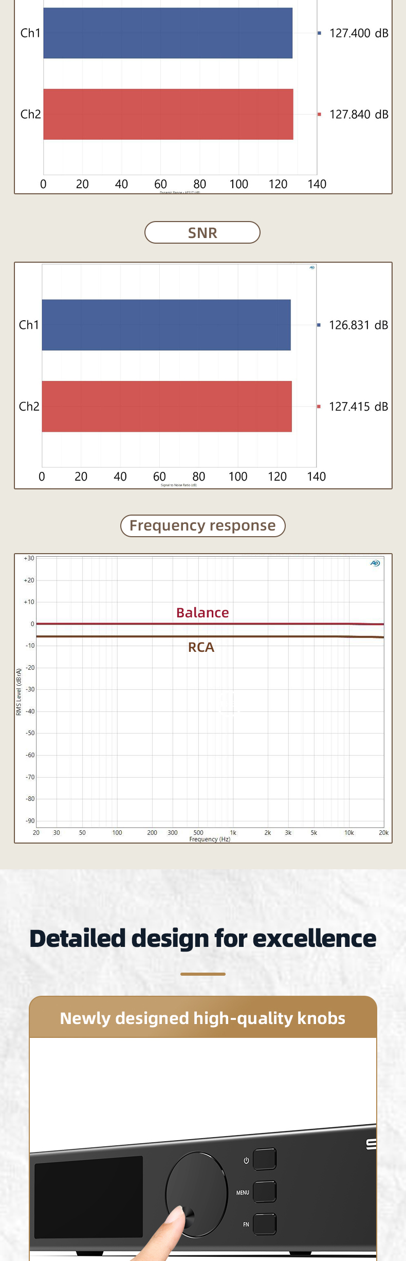 Use Rohm's flagship DAC chip BD34301EKV, and fully optimize its performance to make its THD+N as low as -116dB;