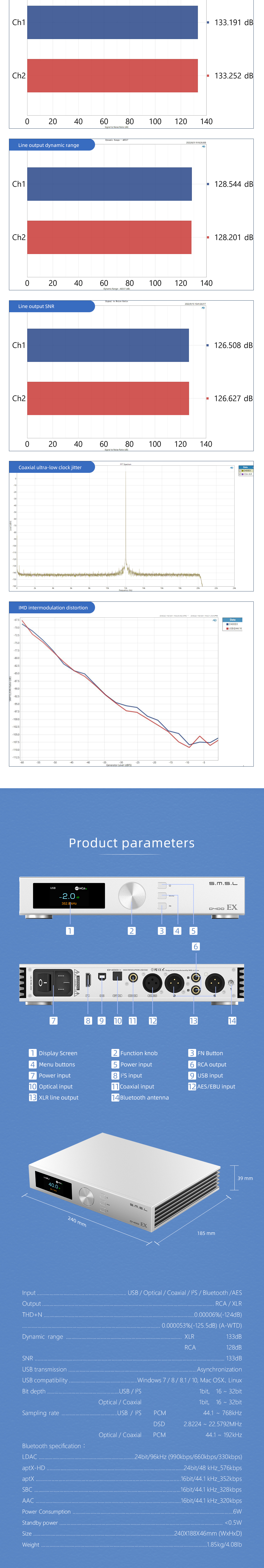 Dual mono design, one AK4499EX per channel, distortion as low as a staggering 0.00006% (-124dB);
