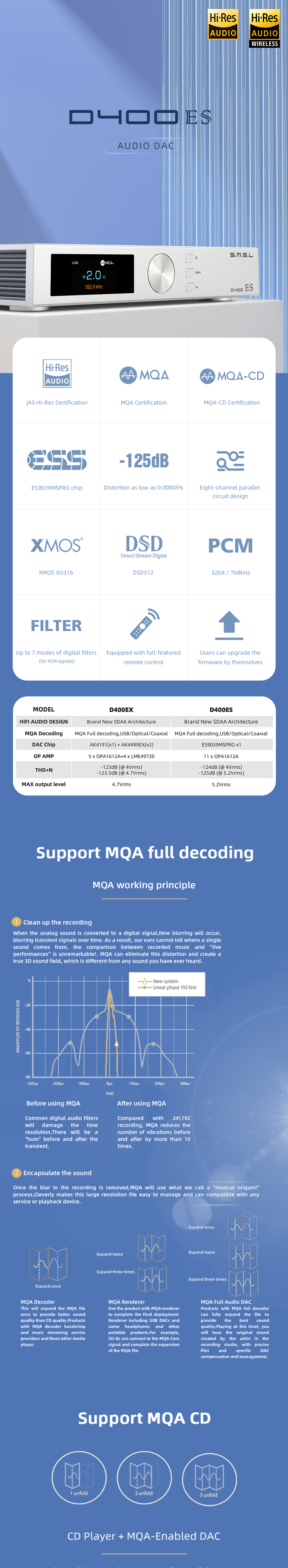 The new generation flagship DAC chip ES9039MSPRO of USA ESS has built-in MQA hard decoding;