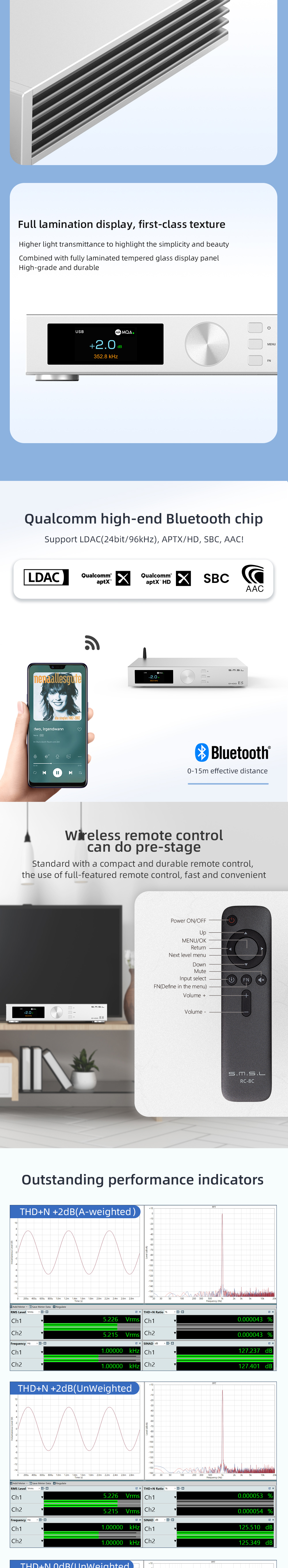 High quality all-aluminum alloy shell, support high quality gold plated input and output connection terminals;