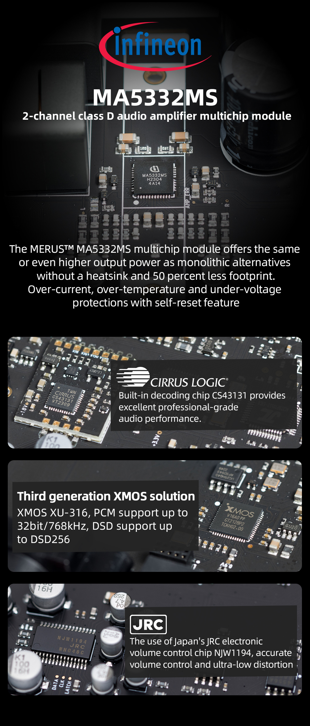 The new third generation XMOS XU-316, PCM support to 32bit/768kHz, DSD support to DSD256;