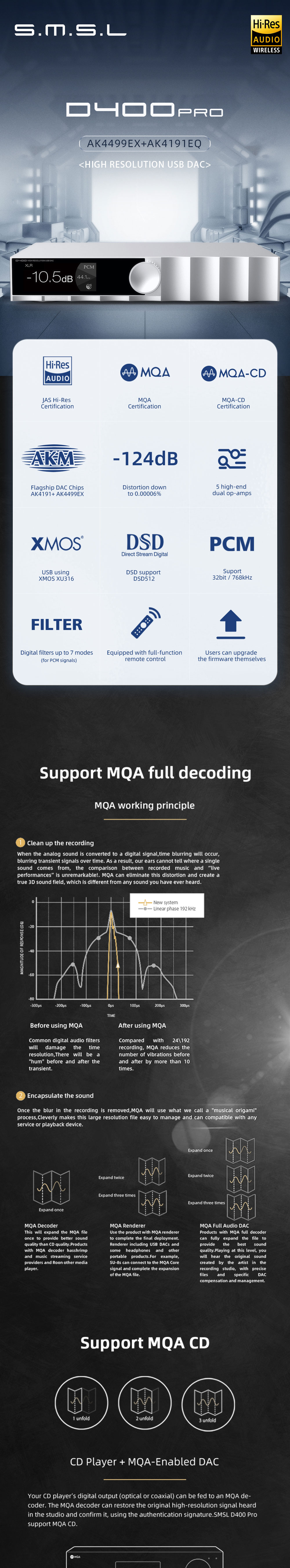 Flagship DAC chip 1 AK4191+ 1 AK4499EX, tap all the potential of the chip, distortion as low as a staggering 0.00006% (-124dB);