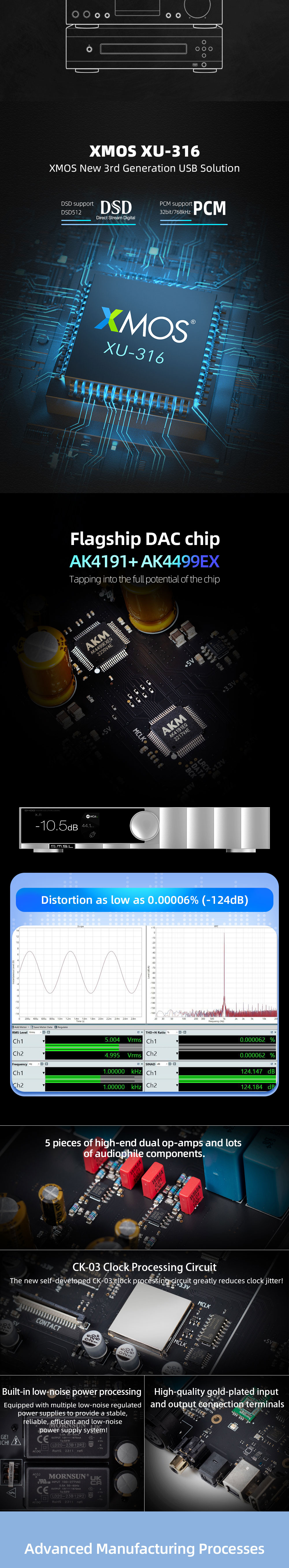 The new self-developed CK-03 clock processing circuit greatly reduces clock jitter;