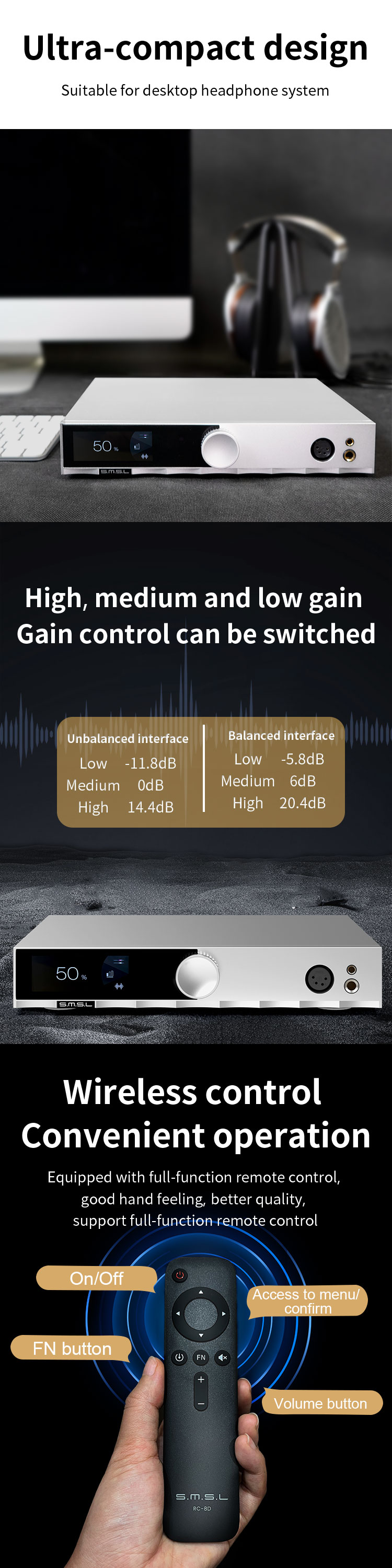 3 gears gain control, low gain is specially optimized for IEM;