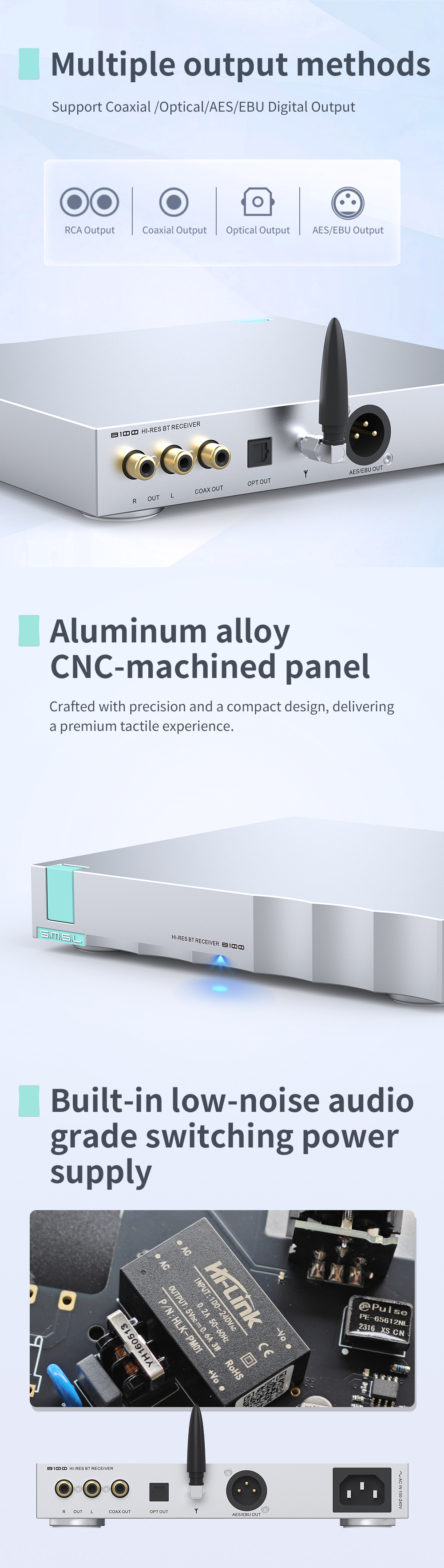 Built-in low-noise audio grade switching power supply