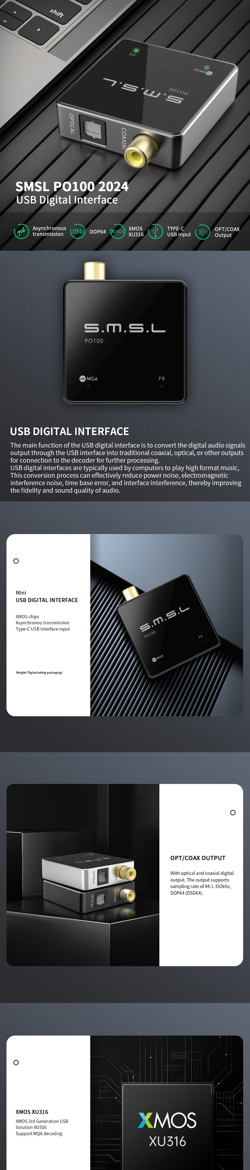P0100 is an ultra compact USB digital audio interface. lt adopts XMOS design.