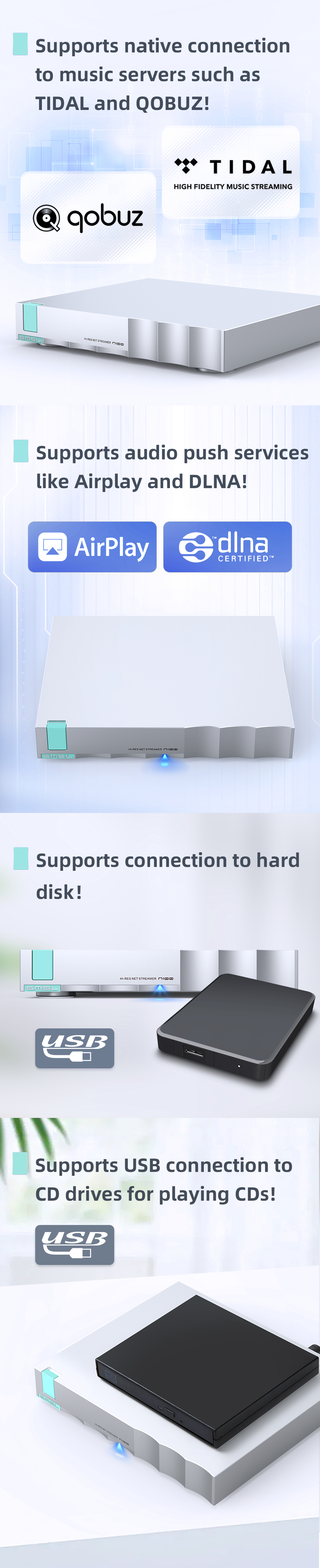 Supports native connection to music servers such as TIDAL and QOBUZ;
