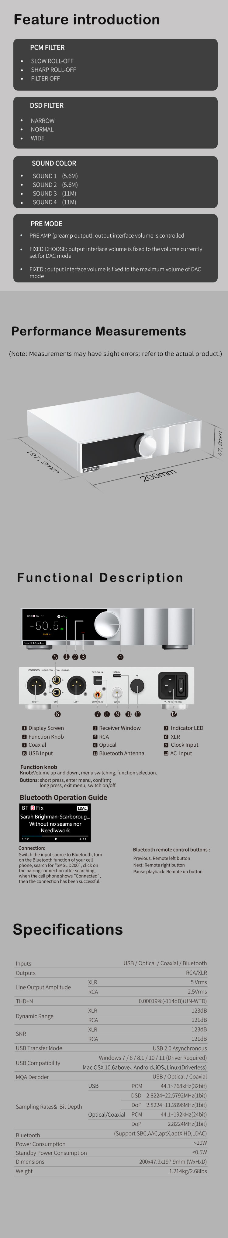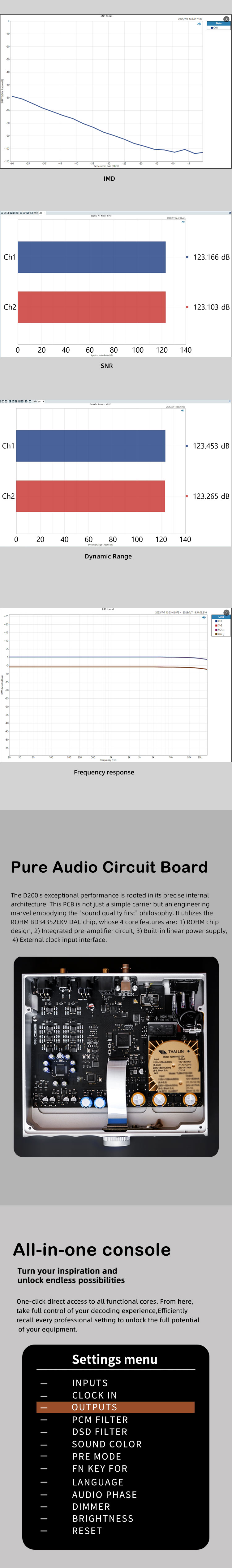 High-Fidelity Audio Design, the use of a Roma BD34352EKV decoder chip, distortion as low as 0.00019%(-114dB);